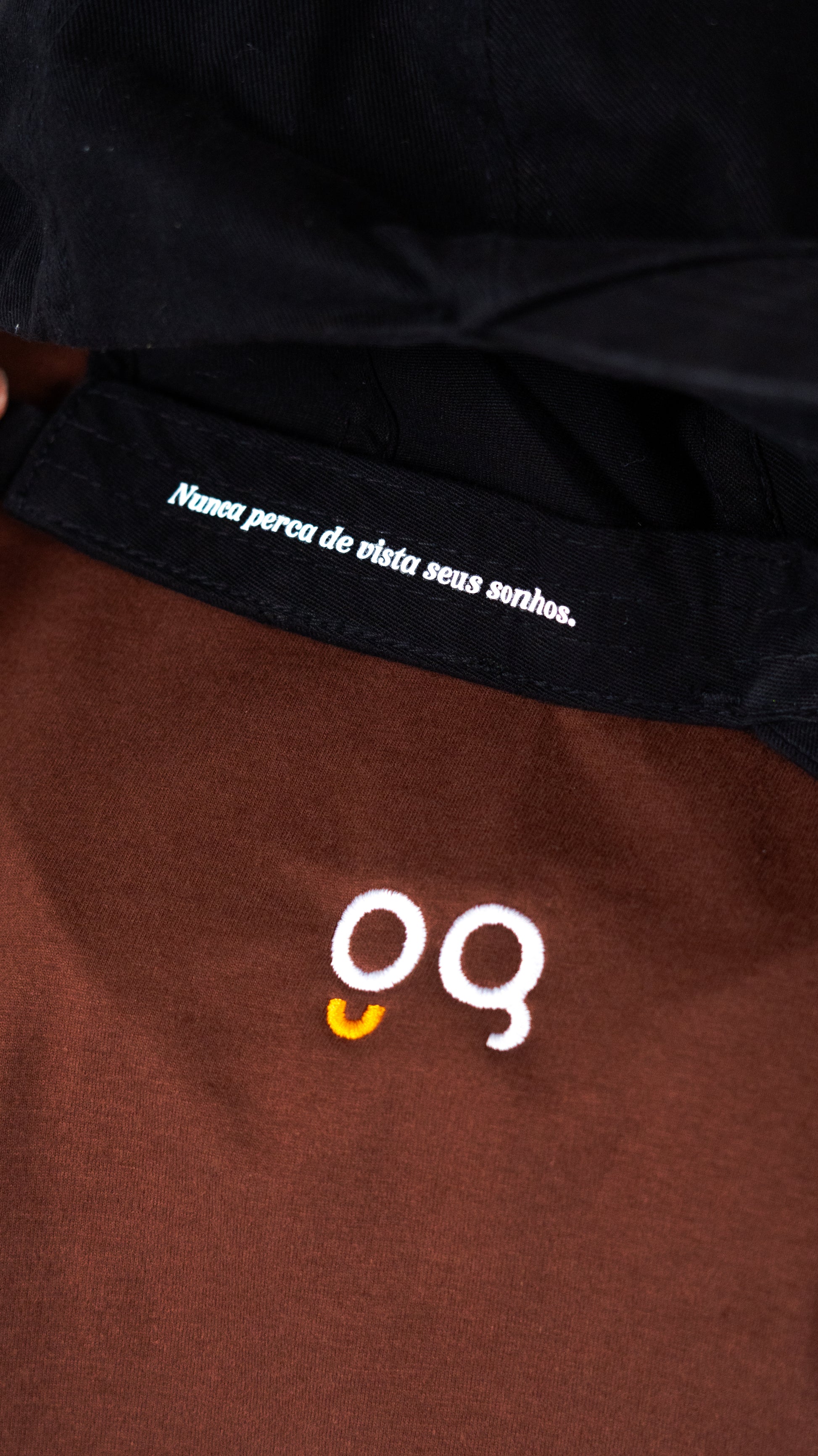 - Mensagem interna estampada em branco: “nunca perca de vista os seus sonhos”